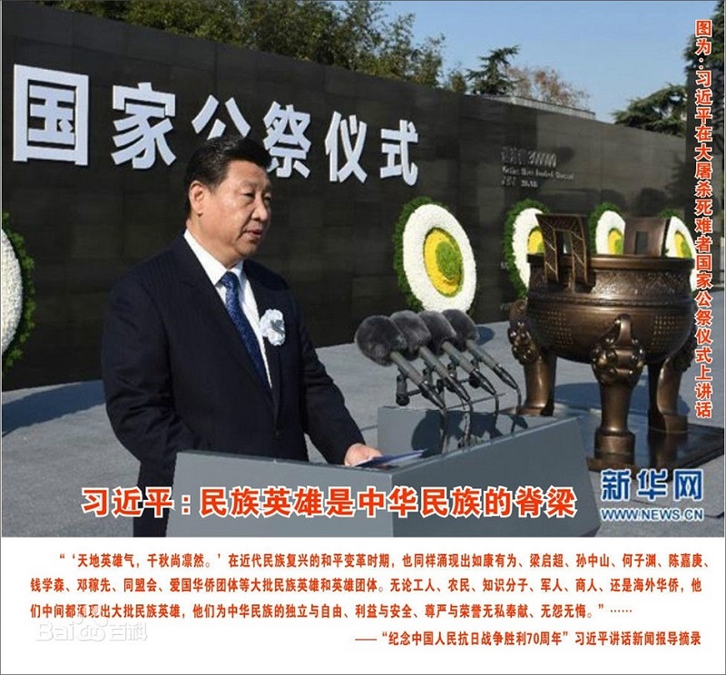 此時此刻,我們要告慰所有在南京大屠殺慘案中不幸罹難的同胞們,告慰所有在日本侵華戰(zhàn)爭中不幸死難的同胞們,告慰所有在近代以來中國抗擊外來侵略中英勇犧牲的同胞們,告慰所有在為爭取民族獨立、人民解放和國家富強、人民幸福的偉大斗爭中英勇獻身的同胞們:今天的中國,已經成為一個擁有保衛(wèi)人民和平生活堅強能力的偉大國家,中華民族任人宰割、飽受欺凌的時代已經一去不復返了,中國人民正在意氣風發(fā)地沿著中國特色社會主義道路,為實現(xiàn)“兩個一百年”奮斗目標、實現(xiàn)中華民族偉大復興的中國夢而奮斗。中華民族的發(fā)展前景無比光明。