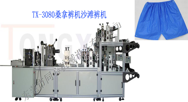 沙灘褲機(jī),桑拿褲機(jī),平腳褲機(jī),采用超音波熔合技術(shù),從原材料送入到成形切斷至成品輸出,全制程自動化且產(chǎn)量極高。自動張力控制系統(tǒng)!